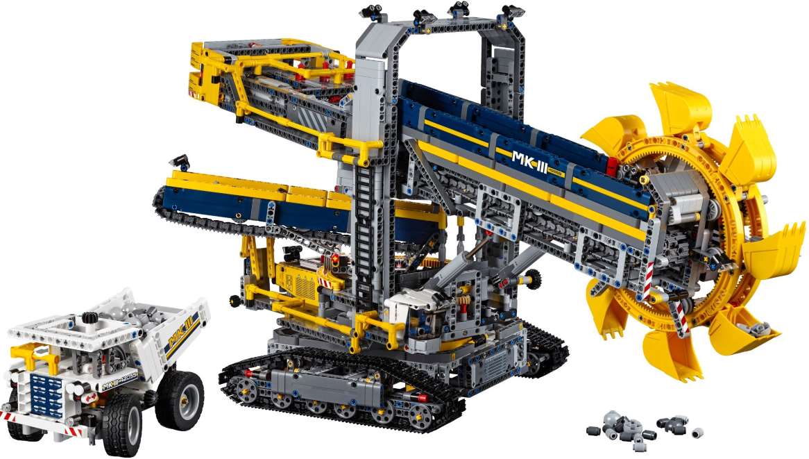 Here is Lego’s newest Technic model, a huge 3927 piece Bucket Wheel Excavator. Which is what it sounds like – a gigantic excavator with a rotating wheel of buckets.
